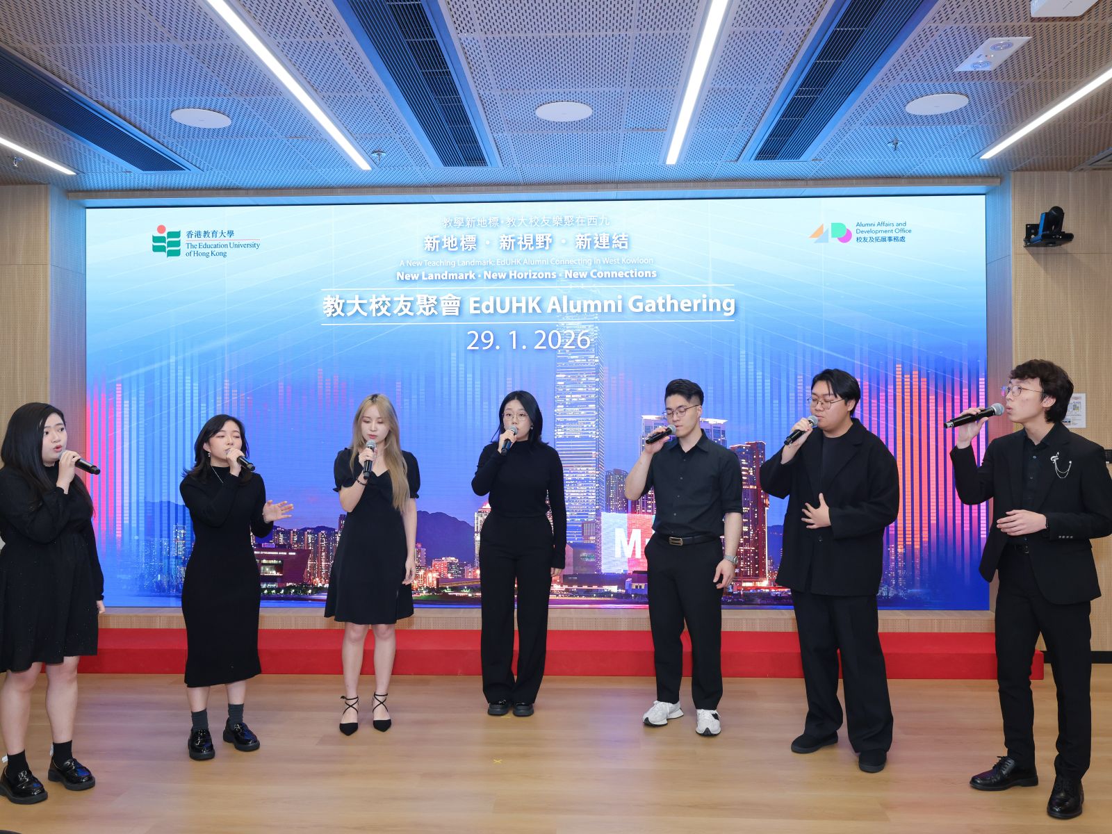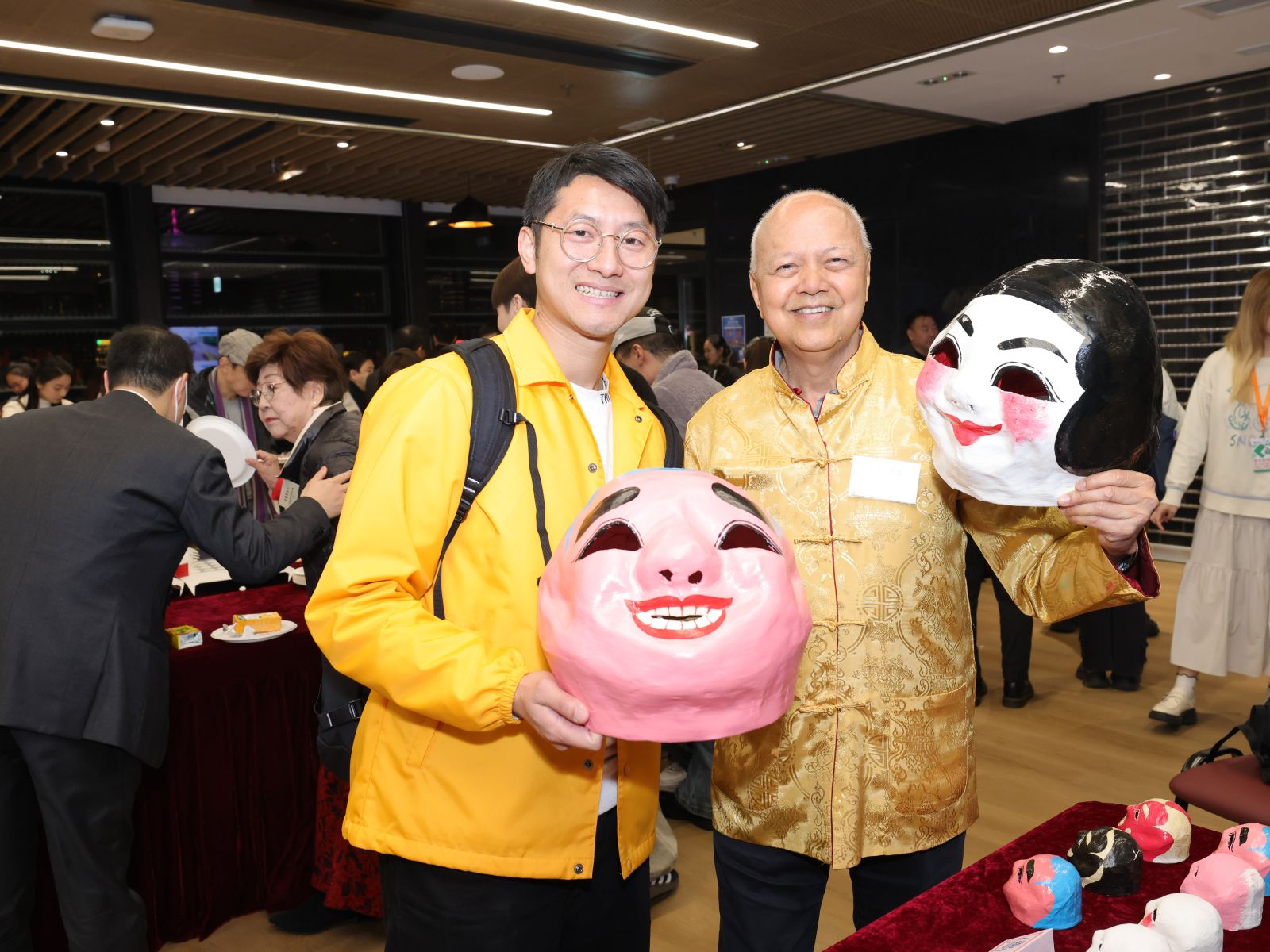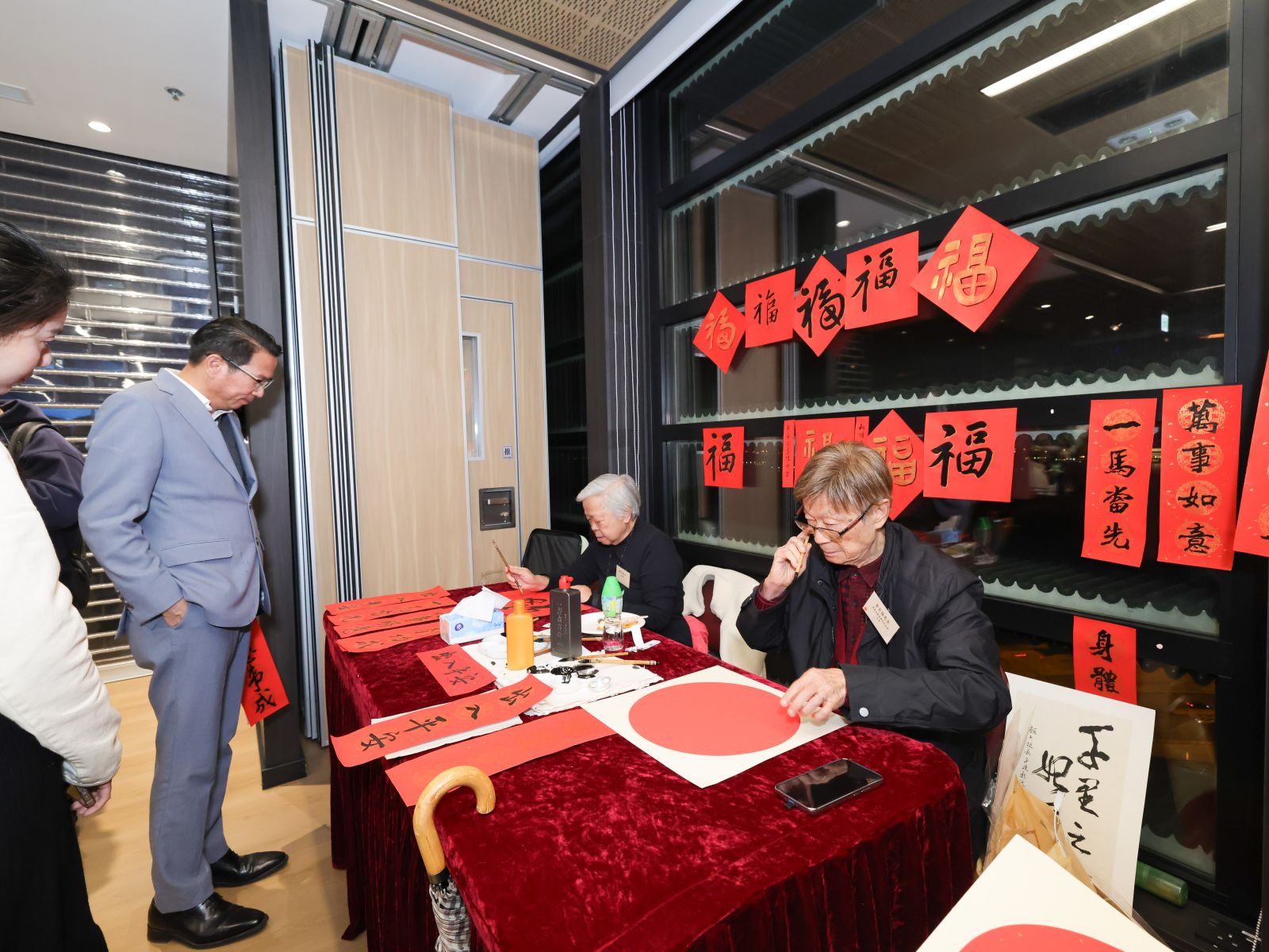 The evening carried a strong artistic dimension. The Vocal Jazz Ensemble of The Education University of Hong Kong (LACOV) opened the night with melodious performances. Alumnus and paper craft master Mr Chan Lai-cheung demonstrated the traditional art of making the “Big-headed Buddha” figure, showcasing Hong Kong’s folk heritage. Grantham College of Education Past Students' Association Chairman Mr Lee Park-keong together with alumna and experienced visual arts teacher Ms Yeung Yau-lin presented Chinese calligraphy live, offering festive blessings through spring couplets. Together, music, craft and calligraphy created a rich cultural atmosphere that resonated with the artistic setting of the West Kowloon Cultural District.